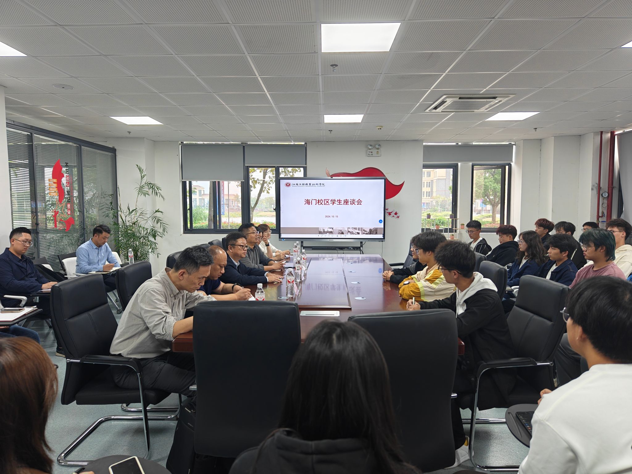 10月15日下午,校党委委员副校长孙兵在海门校区一站式服务中心会议室主持召开了海门校区管理工作学生座谈会。海门校区管理办公室主任于镇洲、学工处副处长刘宇、各二级学院副书记、辅导员及35名学生代表参会。