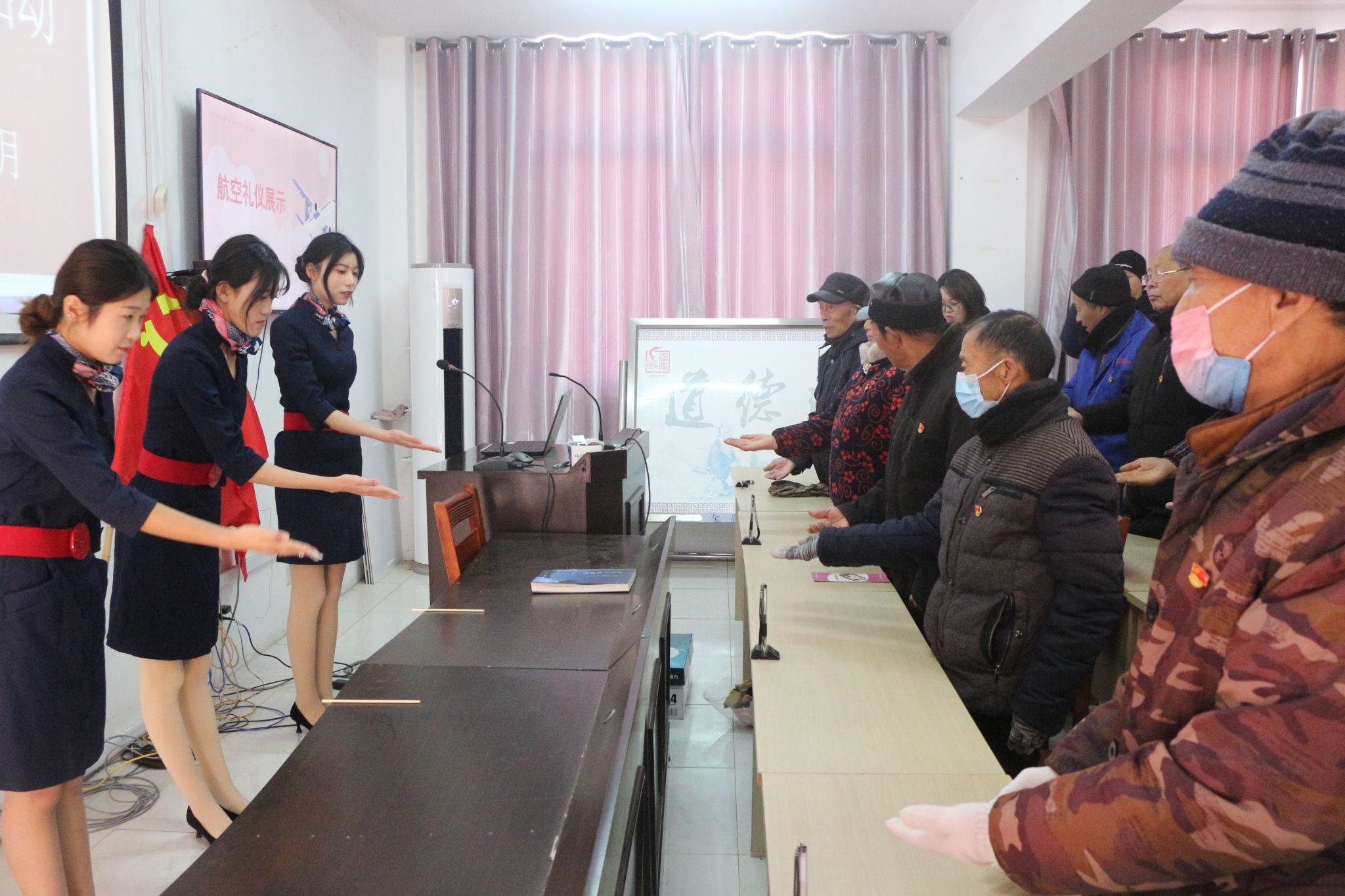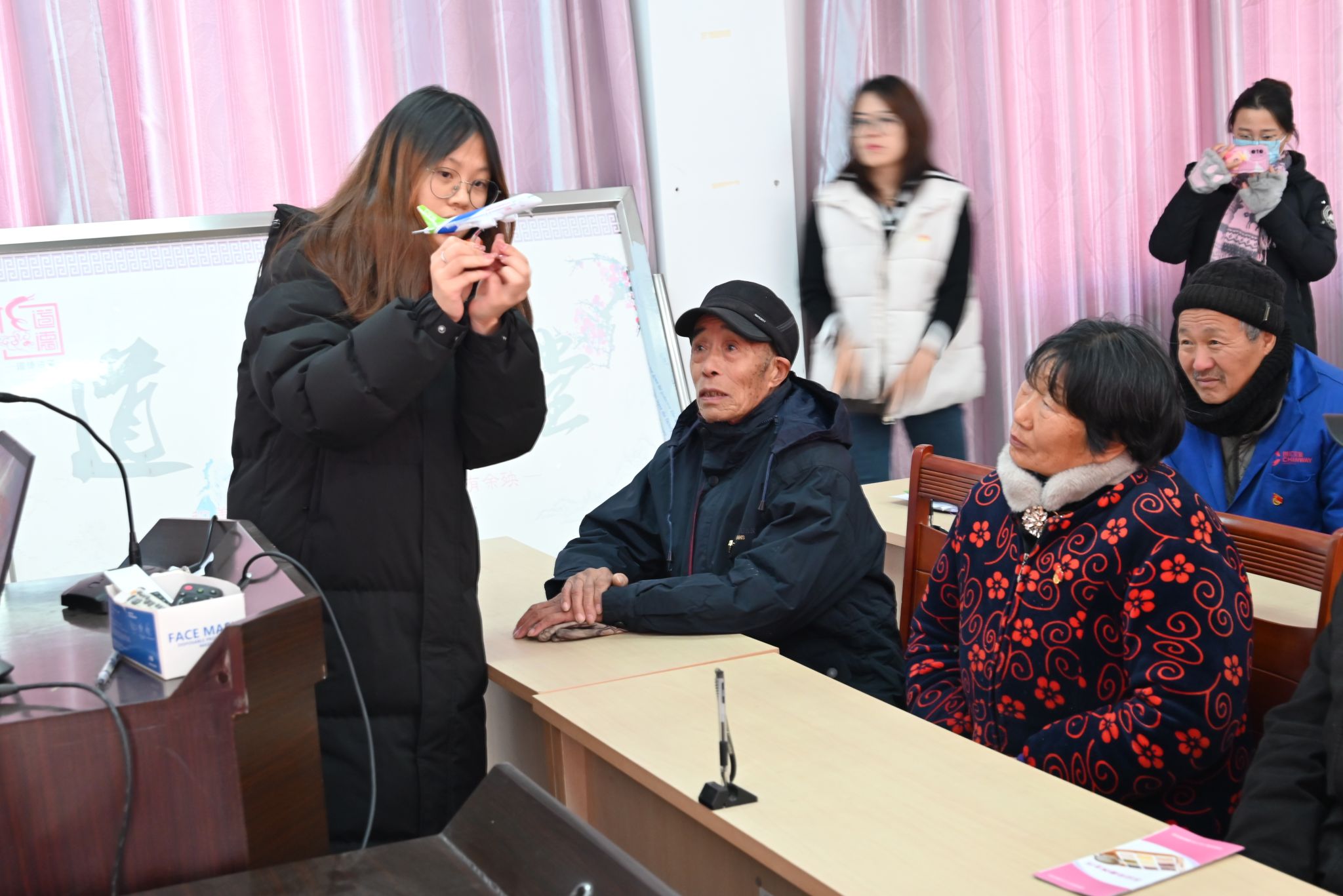 12月21日,航交青年志愿服务团队来到闸桥村党群服务中心,结合学院特色给社区村民和志愿者家长代表带来了一堂生动的航空知识科普课堂。结合飞机模型讲解了飞机结构和原理等知识、带领大家展示并学习了航空礼仪、通过无人机真实航拍视频科普了无人机的功能和应用,让老一辈没有坐过飞机的老党员、老村民非常感兴趣。随后在社区党总支书记江英的带领下,走访慰问了当地低保户家庭,询问其生活和健康状况,检查其家中电器等设备是否存在安全隐患,帮助其做好家中水管、水表等设备的防冻措施。最后志愿者团队走进当地村民家中,进行防寒防冻的宣传,让村民做好防寒保暖,安全顺利过冬。