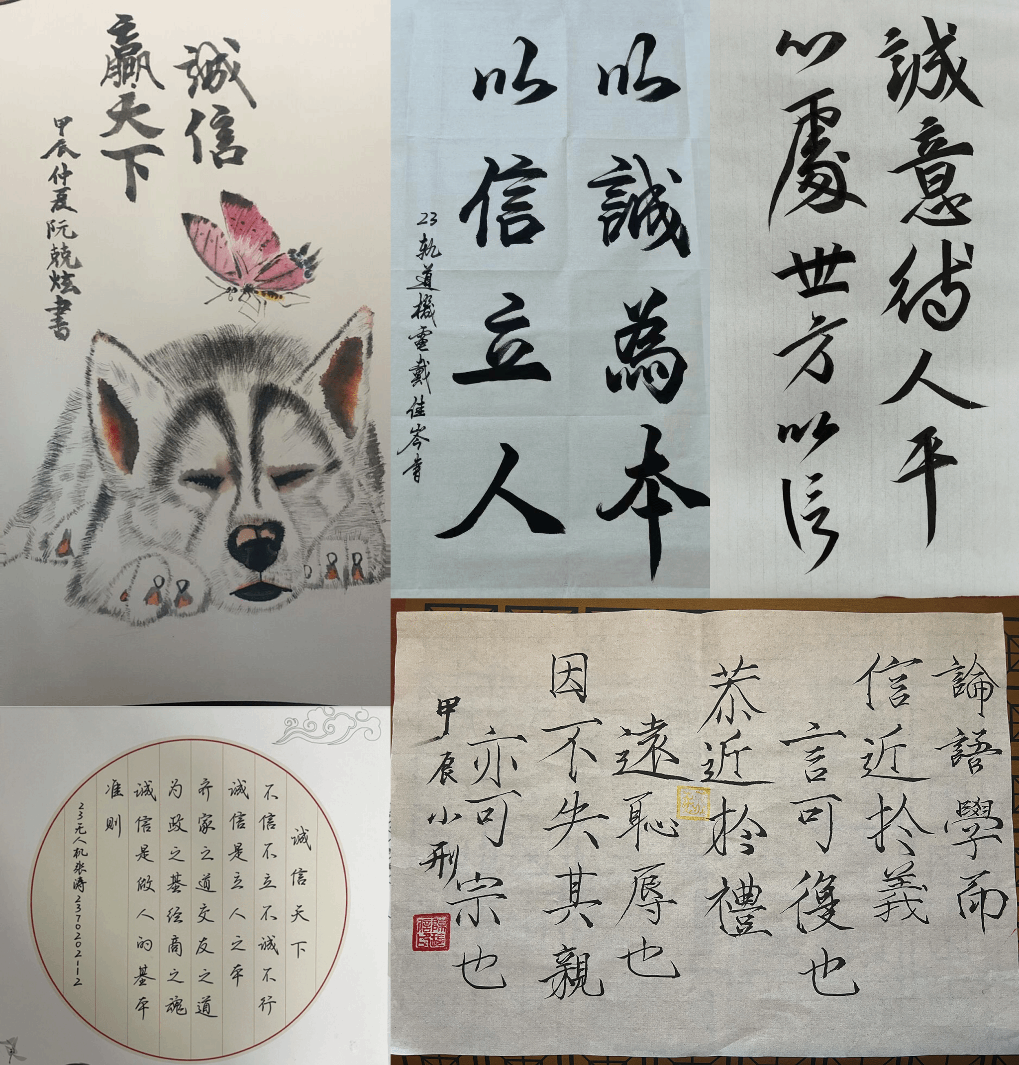 学院于5月-6月开展“以诚为本 以信立人”诚信主题宣传作品比赛,学生借助绘画、硬笔、软笔书法作品,精心制作诚信主题宣传作品,积极参与比赛。活动引导学生培养“讲诚信,有担当”优良品质,助力营造感恩奋进、诚信践诺的良好校园文化氛围。