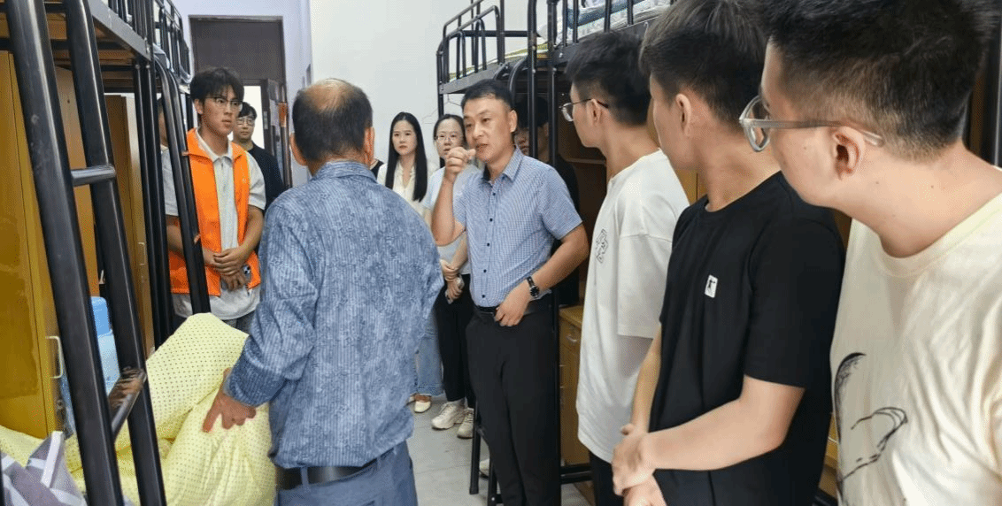 为全面了解新生入校适应情况,帮助其更快融入大学环境,9月14日晚,航空与交通工程学院党总支副书记陈益飞带领2025级班主任和教师代表共同走进新生宿舍,开展面对面交流活动,为刚踏入校园的新生送去学院的问候与关怀。