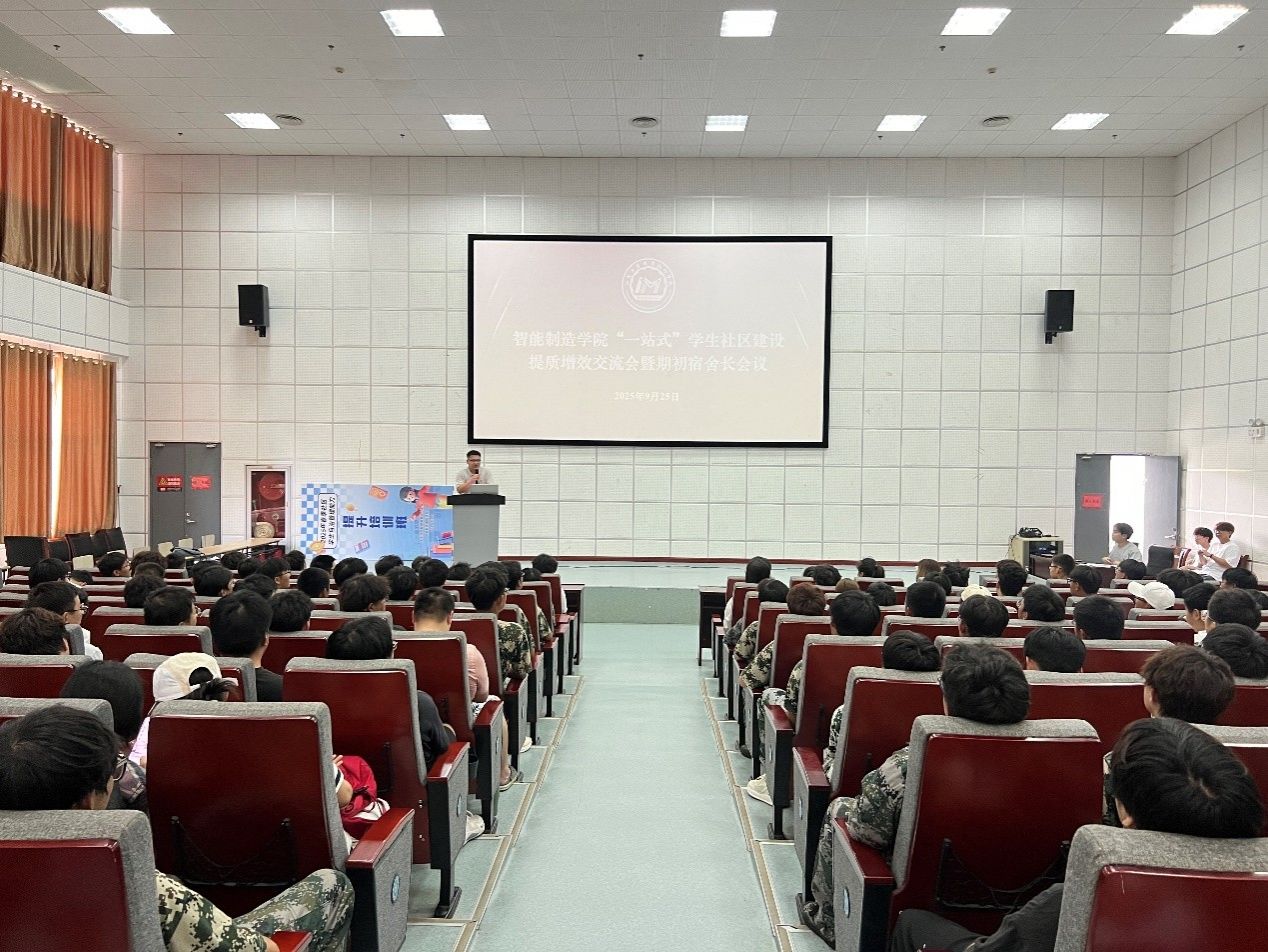 9月25日,智能制造学院召开“一站式”学生社区建设提质增效交流会暨期初学生宿舍长培训会。学院党总支副书记保慧,团总支副书记、辅导员保钰,物业中心主任邹翎,物业主管朱洪燕,7号楼宿管员江卫群参加会议。会议由辅导员朱晨旭主持。2024、2025级全体宿舍长、学院自管会相关成员参加培训。自管会还组织新生参观了样板宿舍。