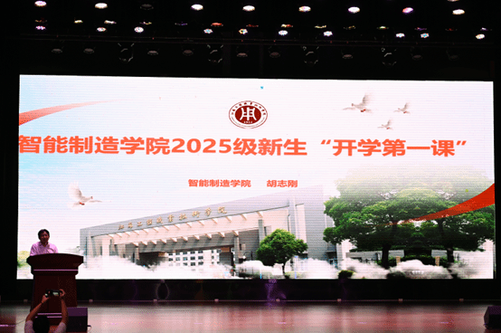 9月15日上午,智能制造学院副院长胡志刚为2025级全体新生带来“开学第一课”。他勉励新生既要专注专业学习、提升技能水平,也要注重品德修养,增强社会责任感。胡志刚特别指出,面对大学阶段的各类挑战,同学们应保持积极心态,勇于探索前沿领域,持续激发学习热情,为个人发展筑牢根基。