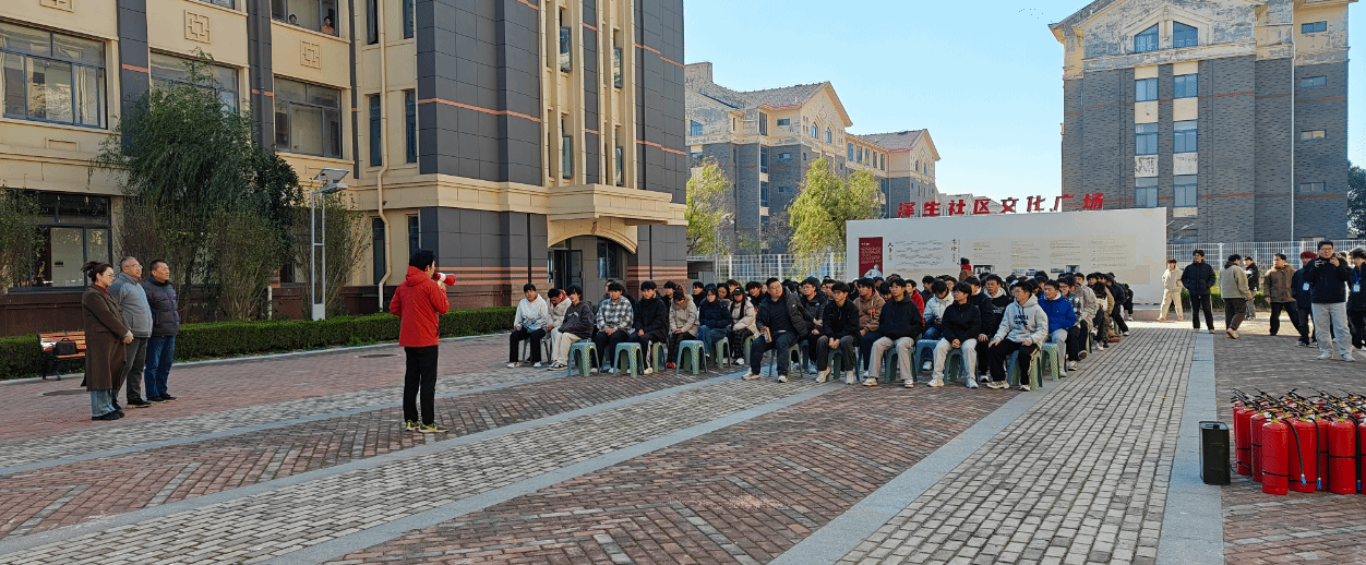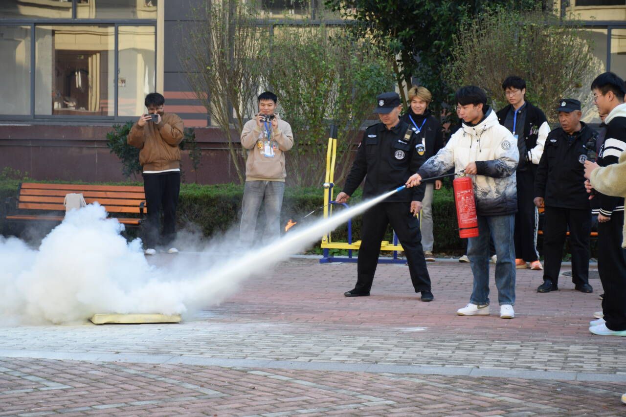 为积极响应学校消防安全宣传月活动,提升师生消防安全意识与应急处置能力,11月19日下午,智能制造学院与建筑与交通工程学院在海门校区泽生社区文化广场联合开展消防安全演习。安全保卫处副处长朱晓虎、安保科吴军,两个学院的辅导员代表、物业中心负责人及各班学生骨干参加活动。朱晓虎结合校园实际,重点讲述了宿舍常见火灾隐患,如违规使用大功率电器、私拉电线、宿舍吸烟等行为带来的严重后果,提醒同学们牢固树立“宿舍安全无小事”的责任意识。